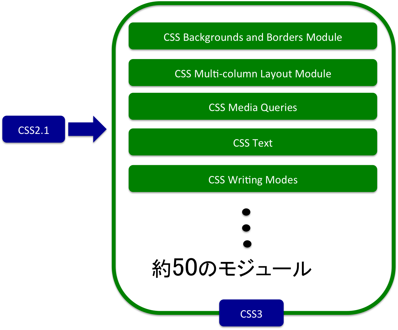 - CSS3では仕様が各機能ごとに分割してモジュール化。